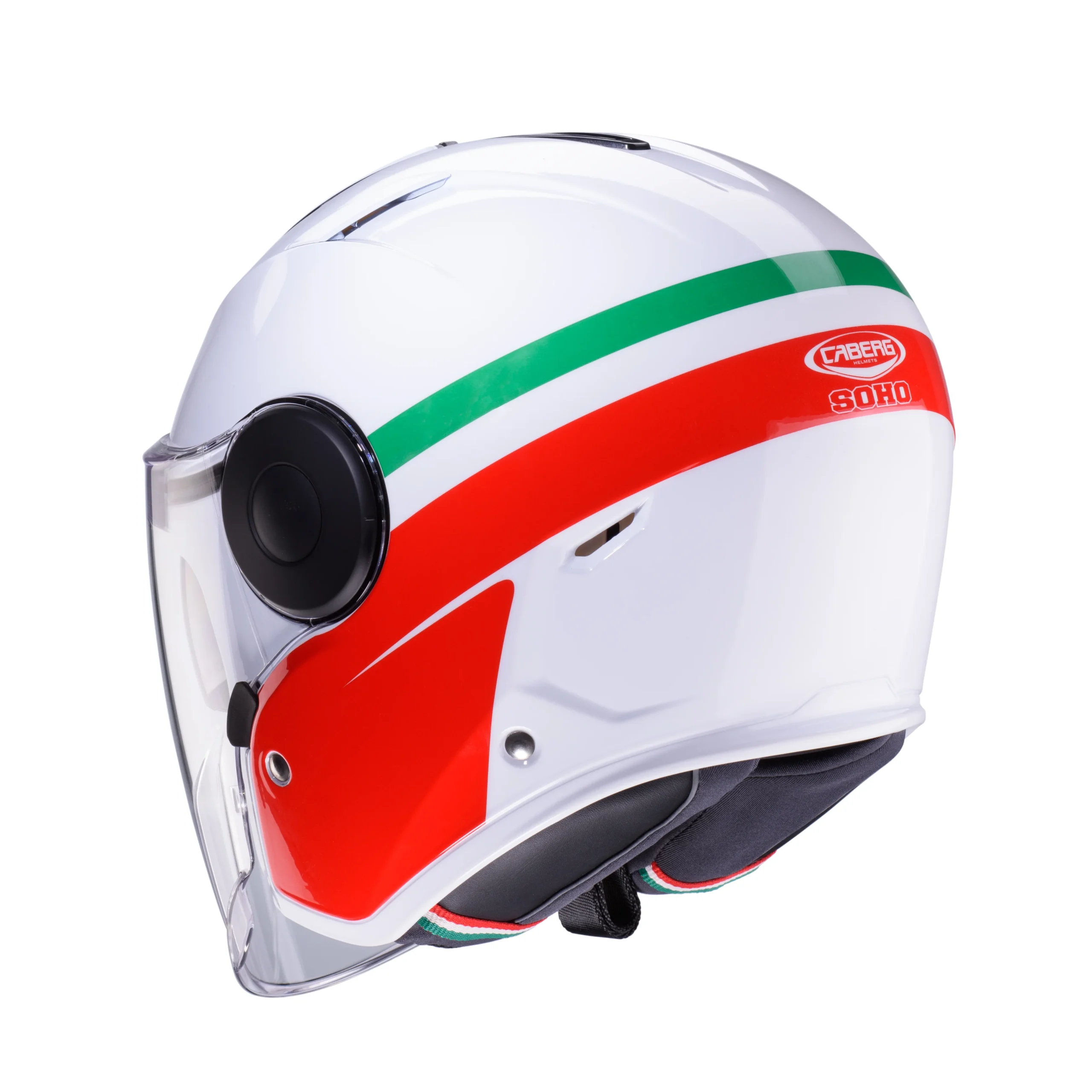 Marca: CABERGTipo: CASCOSCategoria: JETModelo: SOHO ZEPHYRColor: WHITE/RED/GREEN